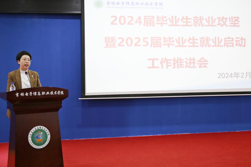 为贯彻落实省委书记景俊海2024年1月3日大学生就业创业座谈会讲话精神及2月27日吉林省委教育工作领导小组召开的“2024年高校毕业生留吉就业创业工作推进会”会议要求,确保学校2024届毕业生实现充分就业、高质量就业,2月29日上午,学校“2024届毕业生就业攻坚暨2025届毕业生就业启动工作推进会”,在主校区办公楼五楼多功能厅召开。学校领导班子全体成员、科级以上干部、全体辅导员参加会议。会议由副校长张晓娟主持。