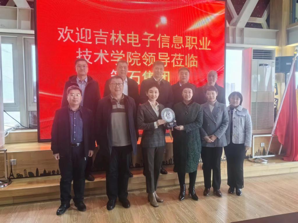 在吉林筑石集团,董事长吴悦春陪同何晓杰一行参观了集“居家养老”“健康驿站”于一体的智慧社区新模式,参观了新型产业园运营模式,了解产业园内企业对技能人才的需求等,校企双方就大学生创新创业、“订单培养”及实习、就业等方面进行深度探讨。